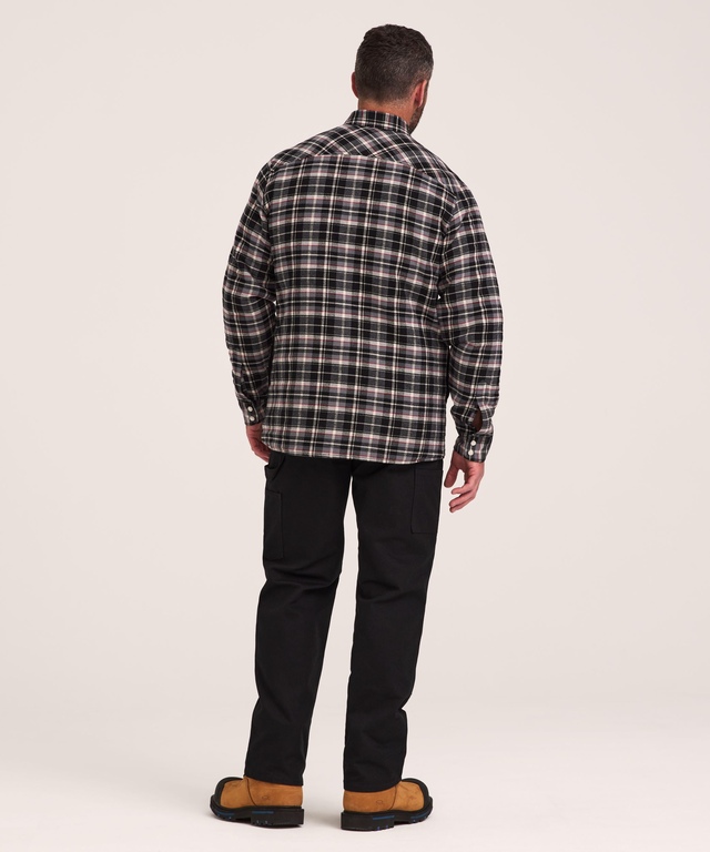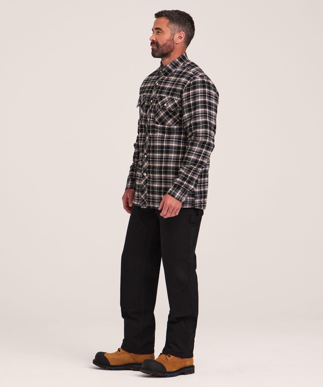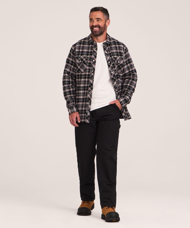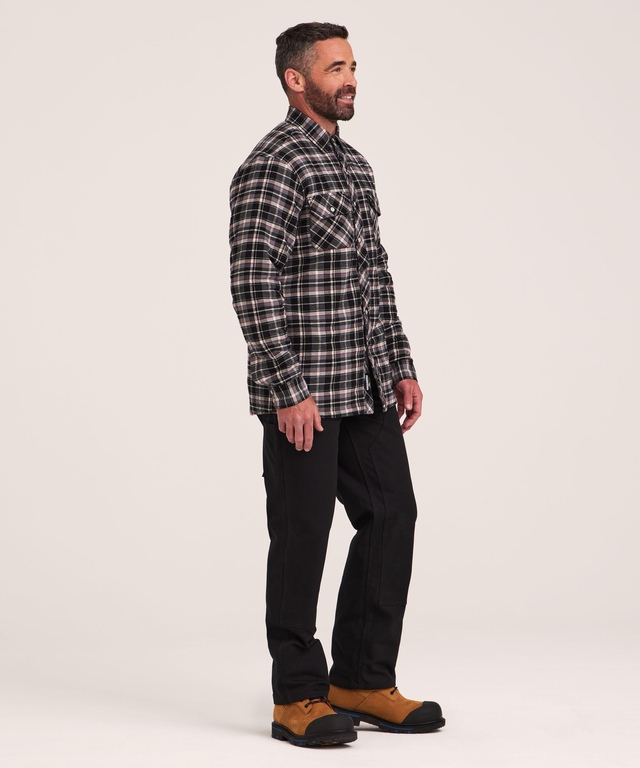 Quilted with lightweight polyfill insulation, this Aggressor workshirt will help you stay warm and comfortable on the job. The workshirt is made with yarn-dyed flannel that’s been brushed for added softness. The snaps at the front feature a classic pearl finish, while permanent collar stays help to prevent rolling to keep it looking neat and professional throughout the day. Four pockets provide plenty of easily-accessible storage space for small tools, and the insulated workshirt’s classic plaid design can move effortlessly from a jobsite to more casual wear.