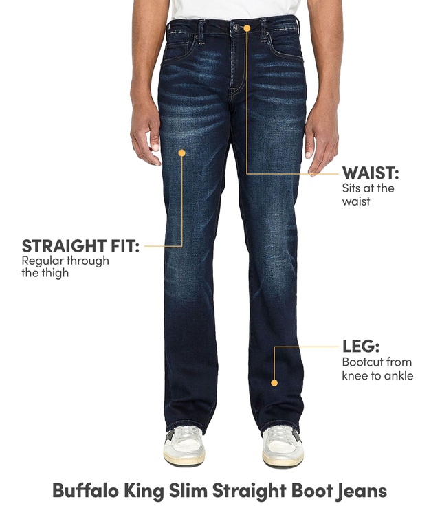 Stretch jeans in an indigo whiskered and sanded wash. This classic style features a regular rise with a straight leg and a bootcut bottom. The distressed design adds a vintage feel to this wardrobe staple. Part of our FREEDOM SERIES Collection, this denim offers super stretch fabric for maximum comfort and movement.