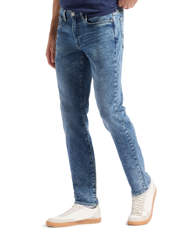 Stay stylish and comfortable with these Buffalo Men's Slim Freedom Flex Jean crafted from a soft cotton blend with stretch fleece. Featuring a sanded, vintage wash, these men's jeans offer a unique combination of classic denim aesthetics and the cozy feel of fleece. This denim provides extra stretchability and a soft touch, making them perfect for all-day wear.