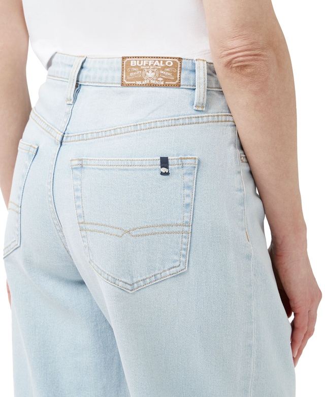 Buffalo's super high-rise Jennifer jeans are right on trend with a bleached look and silhouette that takes you right back to the ’90s. The flattering high waist is complemented by a relaxed straight leg and pleats. Front pockets are decorative. The versatile style pairs with heels, sneakers or boots.