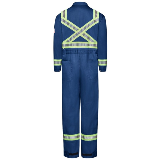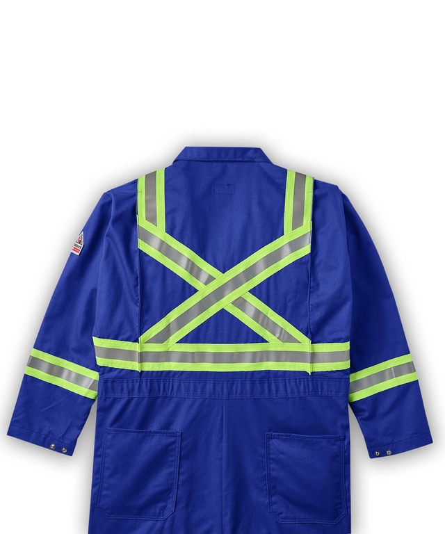 Featuring reflective striping on both the front and back, these Bulwark coveralls are designed to keep you visible from every angle on busy jobsites. The work coveralls are unlined to keep them lightweight and easy to layer comfortably over other clothes. They feature an action back for added mobility, and the sleeves and legs can be adjusted with snaps to help provide a more customized fit. Six pockets provide plenty of storage, and multi-functional utility loops over the chest pockets help to keep tools within easy reach while you work. The flame-resistant coveralls are CSA Z96 Class 1 Level FR compliant.
