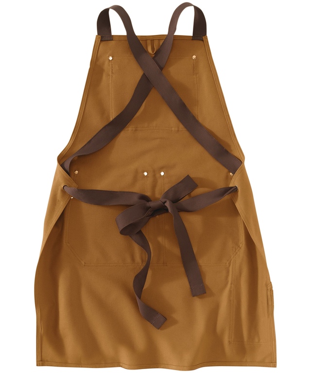 A Carhartt classic work apron made of the brand's strongest cotton duck for rugged utility on the job. A criss-cross strap tied at the back offers balanced weight distribution and a custom fit. This apron has both large and small pockets to hold your carpentry, mechanic or kitchen tools.