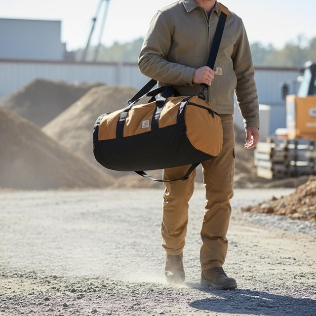 Haul tools to the job site or supplies to the campsite in this Carhartt 40-Liter Duffel Bag. Made of sturdy fabric with a water-repellent finish, it has a coated interior that wipes clean easily. Heavy-duty buckles and double-layer webbing on the carry handles make the bag extra durable.