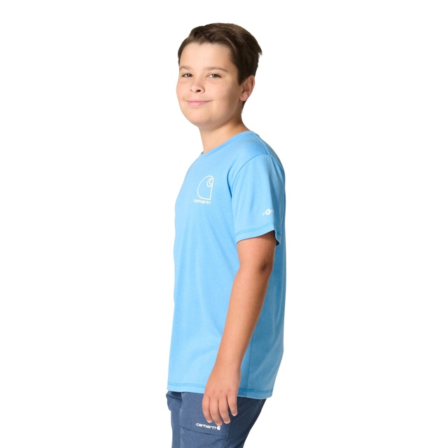 This Carhartt Kids' Force Sun Defender Short Sleeve T-Shirt is a comfortable choice for kids who love nature. This kids' t-shirt is made from heather fabric that is soft and lightweight, making it perfect for layering. Plus, UPF 50+ protection for those sunny days.