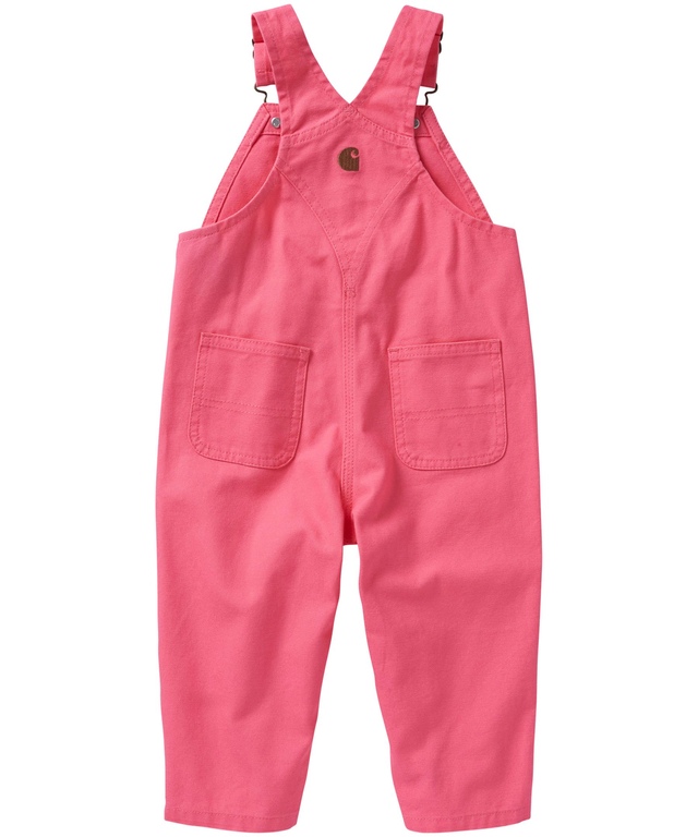 PLACES TO STOW THEIR GEAR: Single bib pocket with snap closure and Carhartt brandmark. Side-front pockets. Back patch pockets. Utility knee pockets