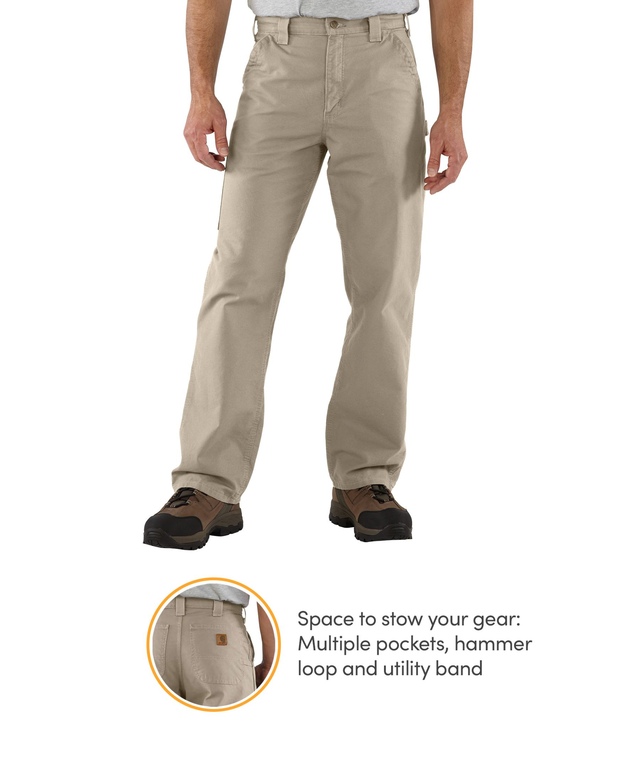 PLACES TO STOW YOUR GEAR: Side-front slash pockets. Back patch pockets. 4 side pockets. Multiple tool and utility pockets. Left leg hammer loop. Right leg utility band