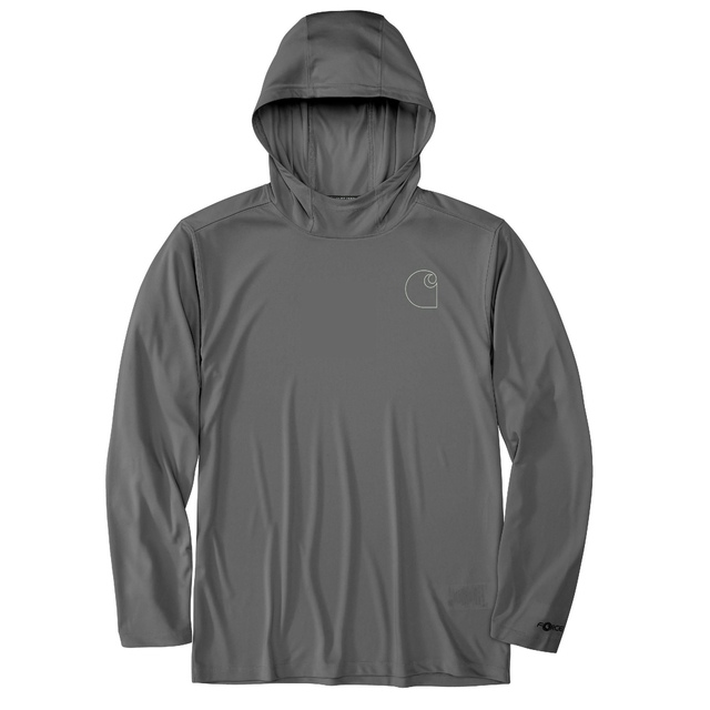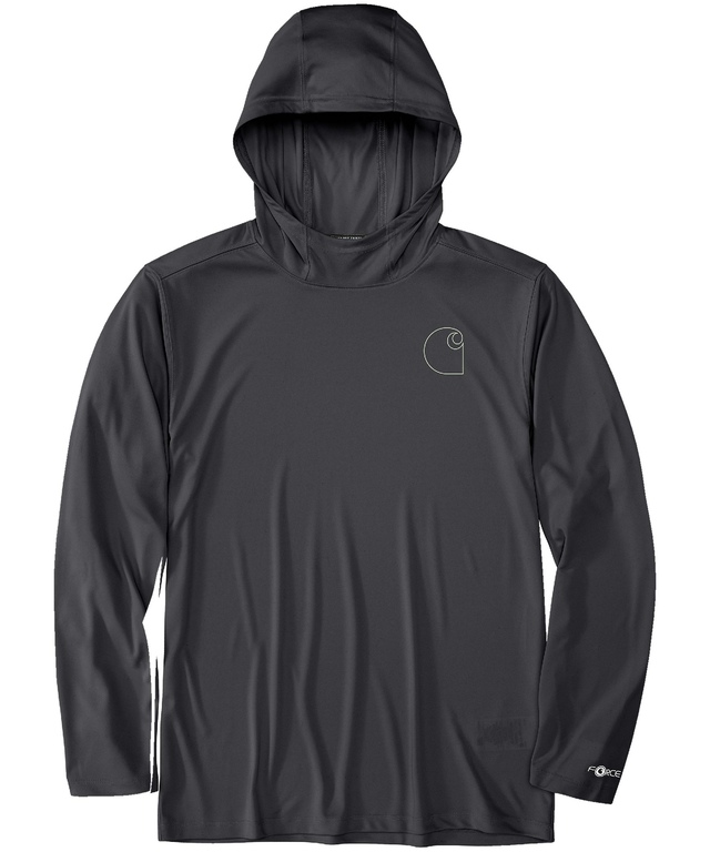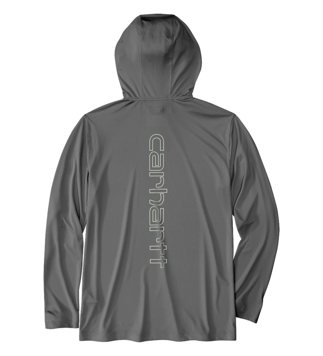 Pull on this men's Carhartt long-sleeve T shirt when you're working full days under the hot sun. A lightweight hood extends coverage, while UPF-rated jersey blocks sun, fights sweat and dries quickly to keep you cool, dry and focused while you work.