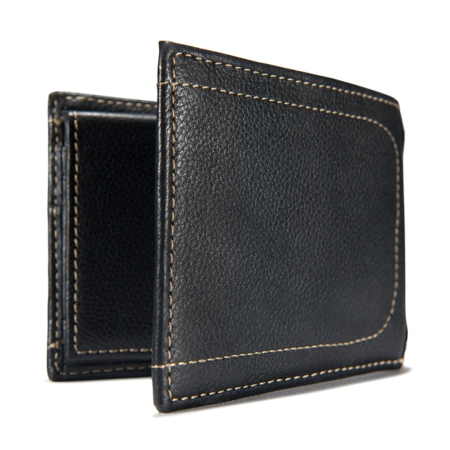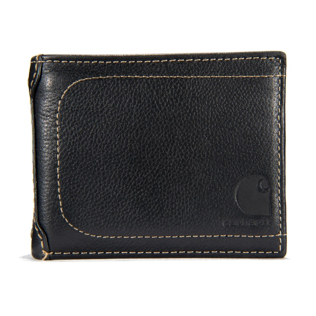 A simple, old-school design makes this Carhartt Men's Passcase Wallet a solid choice for everyday wear. It is made of durable full-grain pebble leather, with a reinforced spine and rivets at the corners. A debossed Carhartt logo is its seal of quality.