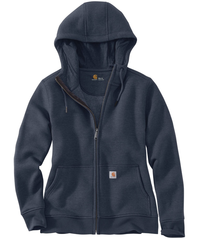 From Carhartt, the women’s Clarksburg full zip hoodie makes a warm addition to your workday gear. It has a well-shaped three-piece hood with a drawcord and front pockets where you can warm your hands or stow your small essentials. The rib-knit waistband and cuffs fit close to keep drafts from spoiling your comfort level.