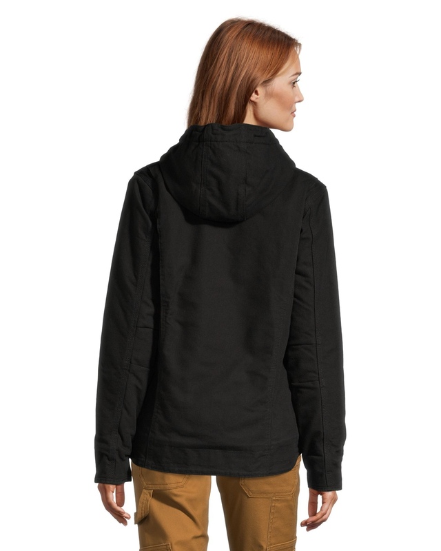 In cotton washed duck, this Carhartt women's jacket is lined in Sherpa for warmth and soft comfort. It has a three-piece hood and the bi-swing back provides easy mobility on the job.