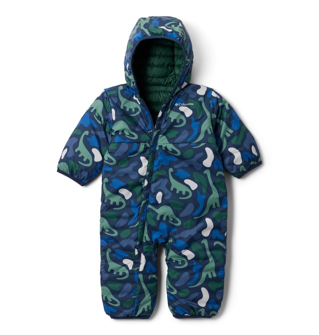 With this Columbia Baby Unisex Lite Reversible Bunting Snowsuit, your little snow bunny gets two toasty-warm styles in one. It combines 100% recycled synthetic insulation, water-resistant fabric, and fold-over hands and feet for extra bundling.