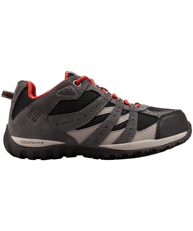 The Columbia Kids' Redmond Waterproof Hiking Shoes give youngsters a secure and comfortable fit. Made with genuine suede and mesh uppers with a waterproof seam-sealed membrane, they let growing feet breathe while staying dry. In addition to scratch-resistant toes and heel caps, these Columbia hiking shoes have Omni-Grip™ rubber outsoles for excellent traction.
