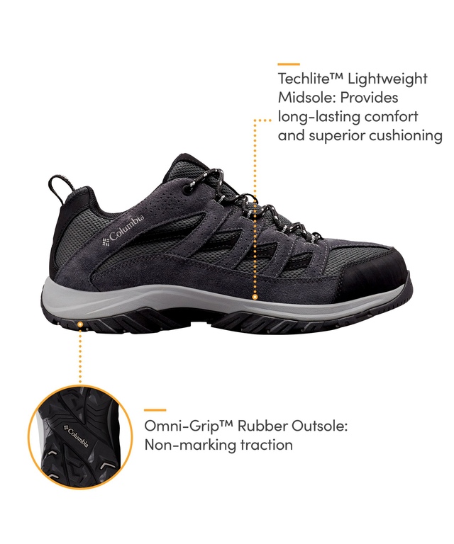 A dependable hiking shoe from Columbia, the Crestwood design will keep your feet dry out on the trails. The hikers offer supportive comfort with TechLite™ midsoles and Omni-Grip™ traction rubber outsoles.