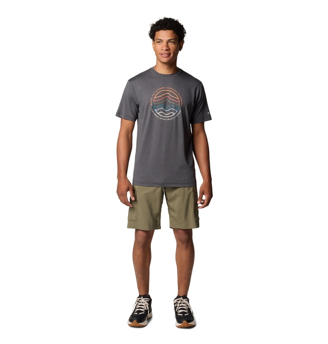 Made for summer comfort, this Columbia T shirt shields you from the sun's damaging rays and wicks sweat to keep you feeling dry. The brand's outdoor-themed graphic appears front and centre.