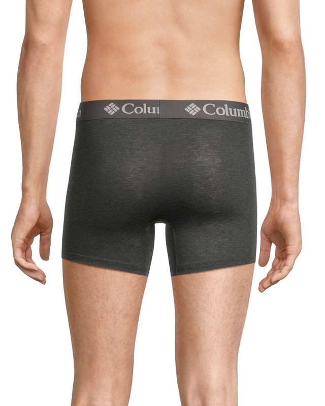 These Columbia high performance stretch boxers are wrinkle and shrink resistant with a soft elastic waistband that's tag free for chafe-free comfort. They feature a contoured no-fly pouch to keep everything in place.