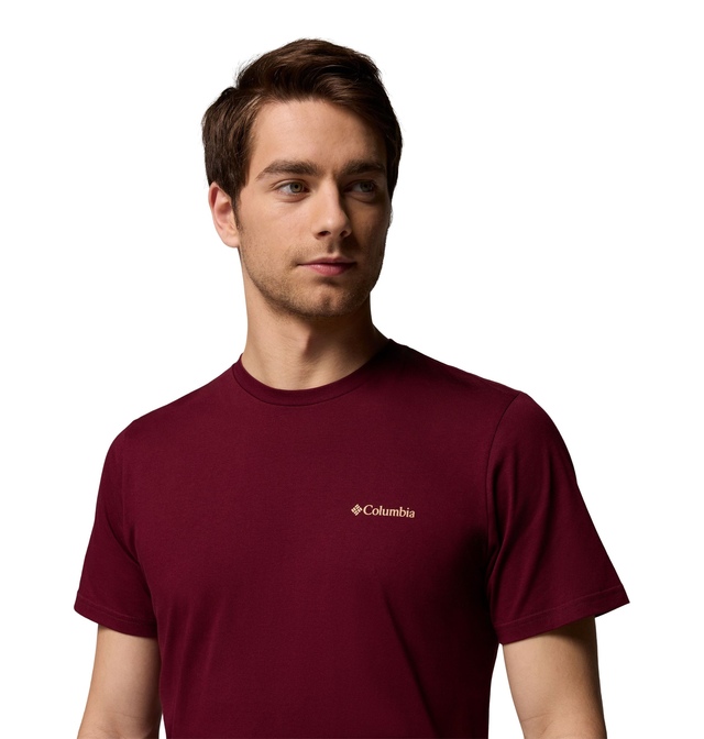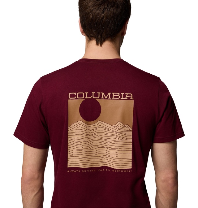 The Columbia Men's Rapid Ridge Back Graphic T-Shirt will keep you on track all day long. Made from 100% organic cotton, this fabric provides sustainable comfort that is both breathable and durable. The graphic t-shirt features comfort stretch for a flexible fit and ribbed collars for style and durability.