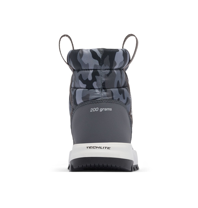 Featuring a classic camo pattern, these Columbia Snowtrot Winter Boots have insulation and OMNI-HEAT REFLECTIVE™ technology to help keep little feet cozy in the coldest months. The kids’ boots feature TECHLITE™ midsoles for impressive underfoot comfort, while OMNI-SHIELD protection guards against stains and helps keep water on the outside. OMNI-GRIP non-marking rubber provides traction on many different types of terrain, while wide openings and stretch insteps make it easy for kids to slide their feet into the boots quickly.