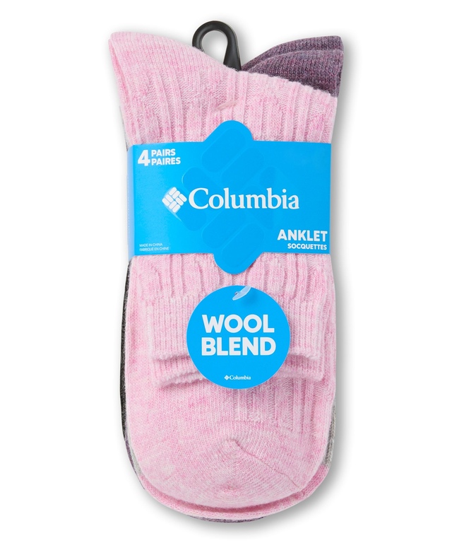 These Columbia cable knit anklet socks are made with a lightweight wool blend yarn for breathable comfort. Perfect for relaxing at home or wearing inside your footwear, these socks are offeredin a pack of four pairs for easy shopping.
