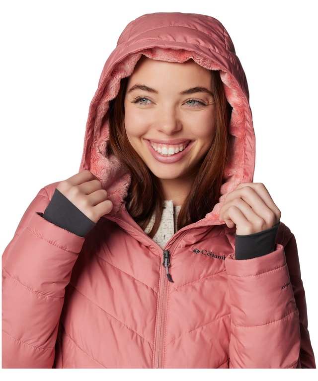 Pairing a contoured design with lightweight synthetic down insulation, the Columbia women’s Heavenly puffer jacket will help you keep the chill off in sleek style. The hooded puffer jacket features OMNI-SHIELD repellency on its exterior to help keep you dry in light rain and snow. OMNI-HEAT REFLECTIVE™ lining on the interior adds a bulk-free boost of warmth.