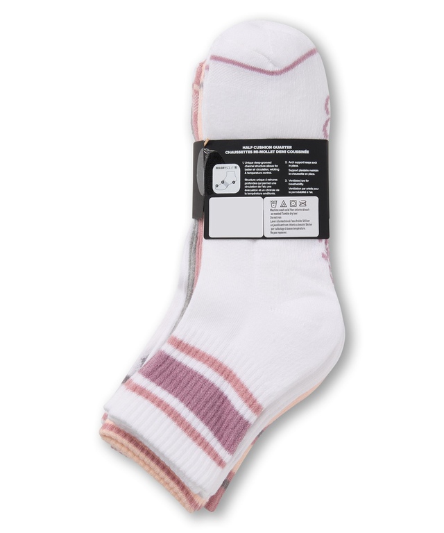 From Converse, these half-cushion quarter socks offer the comfort features you need for all-day comfort inside your Chucks. They're designed to provide good air circulation, moisture management and temperature control. With arch support and ventilated toes, these socks are offered in a pack of six pairs for easy shopping.
