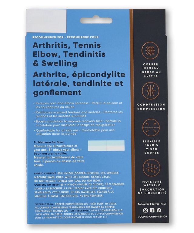 Enhance stability and comfort for your elbows with the Copper Compression Men's Powerknit Elbow Sleeve. Providing a comfortable and supportive fit with targeted compression on your elbow joint. The breathable material allows for extended wear, making it a great choice for your workouts.