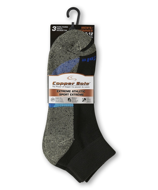 Ready for action, these athletic ankle socks come with copper-infused soles that protect against odour-causing bacteria for superior freshness. They have mesh zones for improved breathability and Moisture Guard™ technology that keeps your feet dryer. Finished with support along the arches and smooth toe seams, they’re designed to maximize comfort and keep your feet comfortable through a fast-paced day.