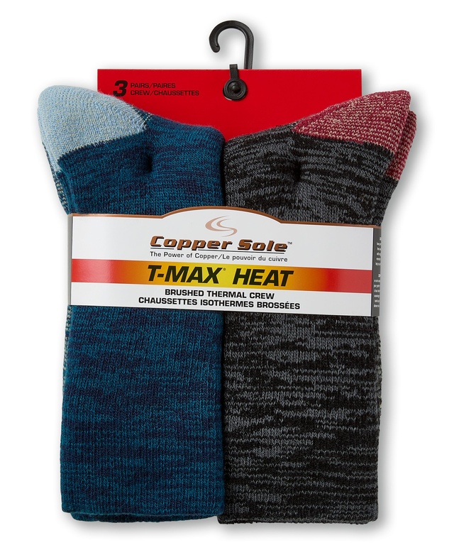 Experience the perfect blend of warmth and functionality with the Copper Sole Men's 3pk T-Max Heat Thermal Crew Socks. Designed to wick away sweat, these crew socks offer exceptional performance for any lifestyle. Complete cushioning and a smooth toe seam make every step feel comfortable.