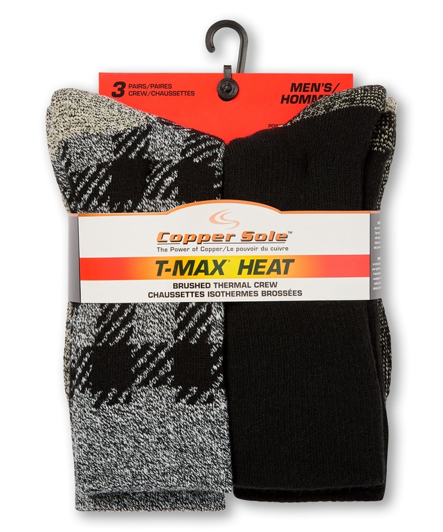 When you're enjoying outdoor activities, keep your feet warm and cozy wearing these Copper Sole thermal crew socks. They feature our T-MAX® HEAT® technology that provides the warmth and Copper Sole's Copper Ion tech that helps to eliminate odour. Extra comfort features include non-chafing toe seams and underfoot cushioning.