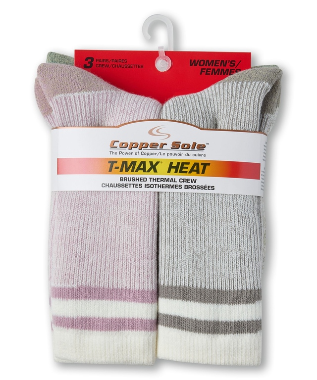 We partnered with Copper Sole using our T-MAX® HEAT technology to keep your feet warm. With Copper Ions in the yarn, these socks also prevent the formation of odour-causing bacteria. Designed with a brushed layer for extra comfort in cold weather, these socks are offered in a convenient pack of three pairs for easy shopping.