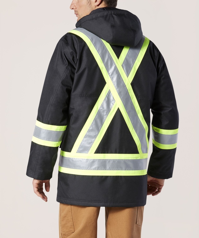 SAFETY FIRST: CSA Z96-15 Class 1, Level 2. ANSI/ISEA 107-2015 Type O, Class 1. 2" 3M Scotchlite Reflective Material in 4" WCB/WorkSafe BC/DOT configuration