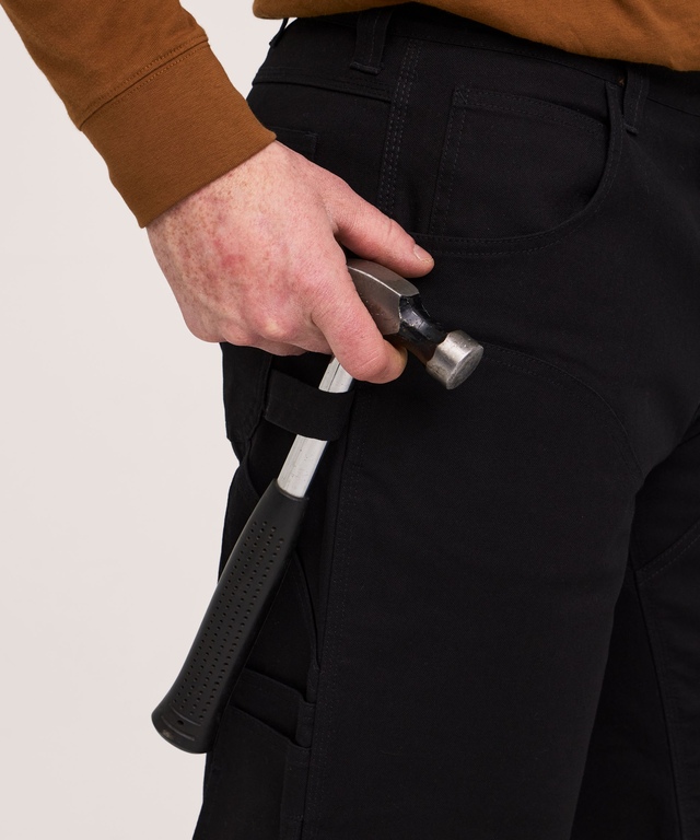 PLACES TO STOW YOUR GEAR: Cargo pocket with outer pocket & double pencil stall on left leg. Triple tool pocket on right leg. Hammer loop on both legs