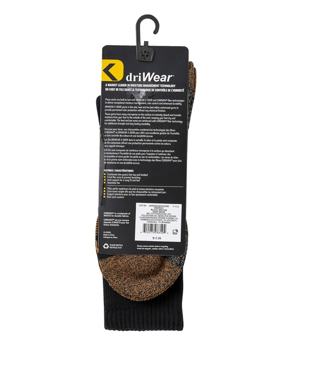 DRIWEAR™ X-ODOR®: Advanced one-way moisture management to keep you dry, plus odour protection in the sole. DRI-WEAR X-ODOR/CORDURA blend in heel and toe for added durability