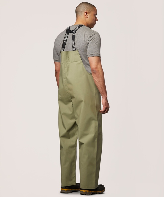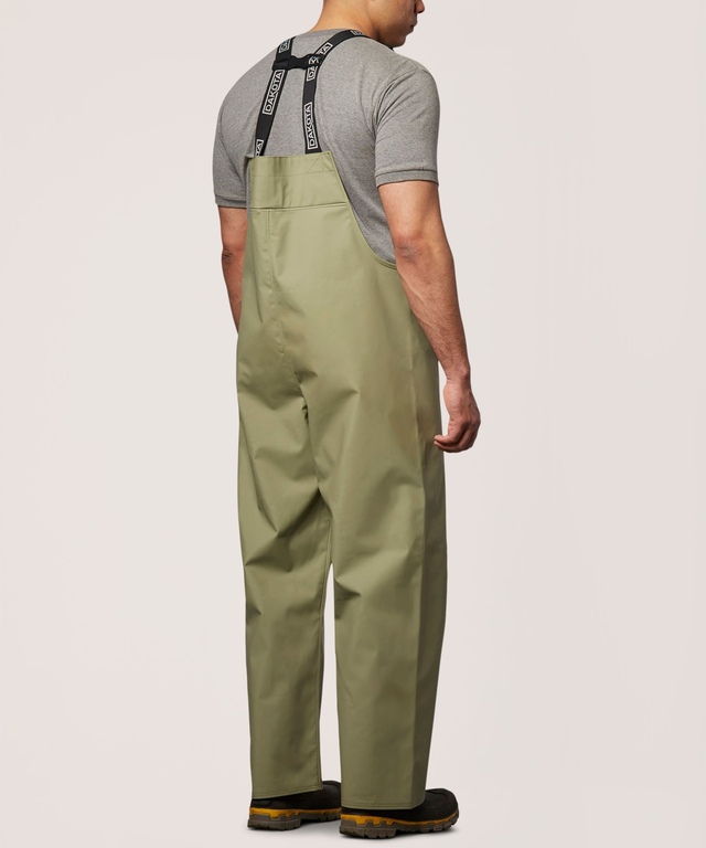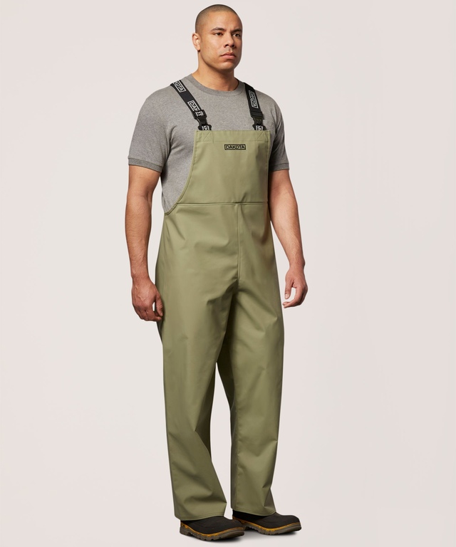 For extra coverage from tough work environments, these Dakota rain bib pants have a bib front and high back with quick release buckles for easy on and off. A zip pocket inside the front bib keeps possessions secure, with a pencil stall for utility. Made in a premium PVC and polyester sandwich material, these bib rain pants are resistant to oils, acids and seawater while sealed seams keep you dry in wet conditions. These rain pants are recommended for food and fish processing, commercial and sport fishing, yard work, construction and chemical processing.