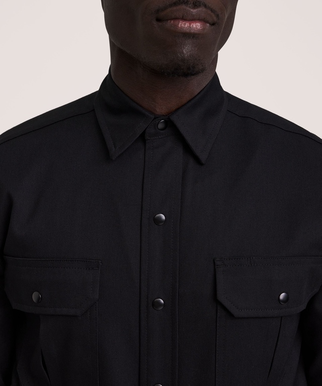 • CHEST POCKETS WITH SNAP-CLOSE FLAPS: Left pocket includes pass-through for pencil/pen