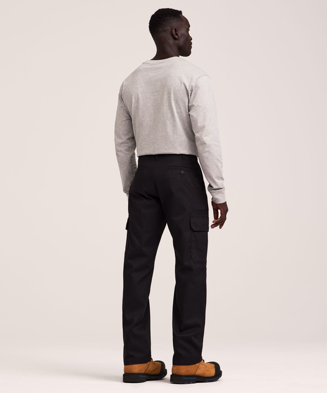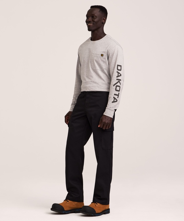 From Dakota WorkPro Series, these flat front stretch cargo work pants are made for the rigours of everyday wear on the job. The poly-cotton twill is treated with a soil and stain-resistant finish to keep them looking good longer. All main stress points, including the belt loops, are bartacked with strong polyester core thread for durability. These work pants have double-lined front pockets to help prevent tools from poking through the fabric and a pair of back welt pockets with buttoned closures to keep small items secure. Expandable cargo pockets, one with an additional cell phone pocket, provide ample room for small workday essentials.