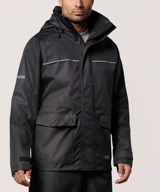 Our Dakota WorkPro Series safety jacket is made of waterproof ripstop fabric offering superior tear resistance. It remains flexible in cold and wet conditions. The jacket is mesh-lined in the body for breathable comfort. When the weather permits, you can easily detach the three-piece peaked hood. For weather sealing, this jacket features a heavy-duty zippered closure between inner and outer storm flaps and adjustable wrist straps. Fully compliant with WCB, Worksafe, DOT, CSA and BC MOT safety requirements for visibility, this VizLite™ Dual Technology work jacket has multiple storage spots for the gear you carry with you on the job. Full details are covered in the accompanying feature box.