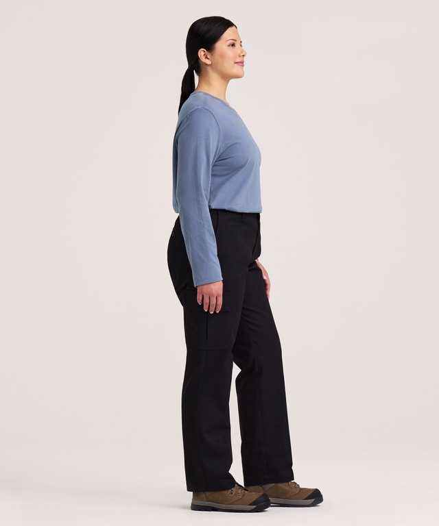 From Dakota WorkPro Series, these flat front stretch cargo work pants are made for the rigours of everyday wear on the job. The poly-cotton twill is treated with a soil and stain-resistant finish to keep them looking good longer. These work pants have double-lined front pockets to help prevent tools from poking through the fabric and a pair of back welt pockets with buttoned closures to keep small items secure. Expandable cargo pockets on both legs and one additional cell phone pocket above the right leg cargo pocket, provide ample room for small workday essentials.