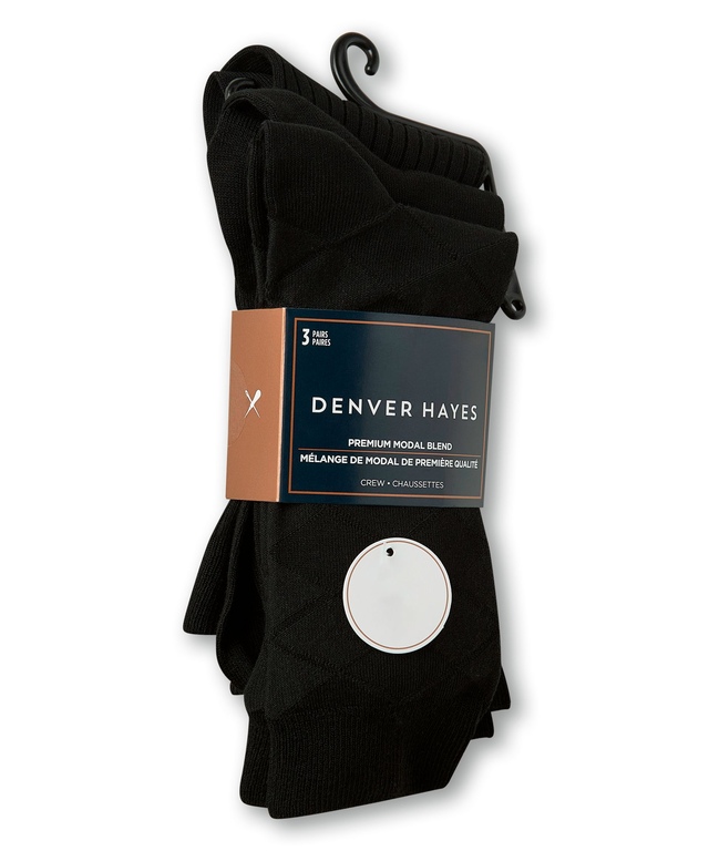 These Denver Hayes crew socks are luxuriously soft and comfortable. Smooth toe seams prevent irriration and reinforced heels and toes make them durable for long-term wear. Available in a pack of three pairs - buy one pack and get another at 50% off.