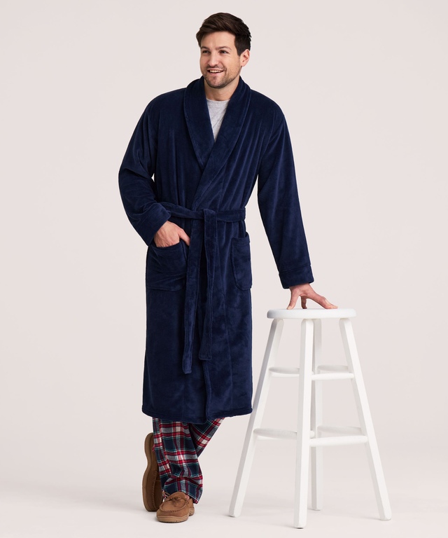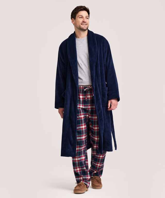 When it's time to kick back and relax, our Denver Hayes fleece robe offers soft and cozy comfort. The wrap-around style has a self tie and a pair of roomy pockets for the things you need to keep close.