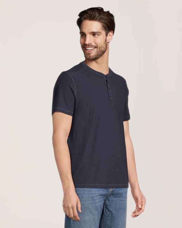 A classic Henley from Denver Hayes, this design is soft and comfortable for warm weather wear. The garment-washed fabric has a textured finish and the buttoned Henley placket elevates the style beyond that of a tee. An ideal addition to your casual wear collection.