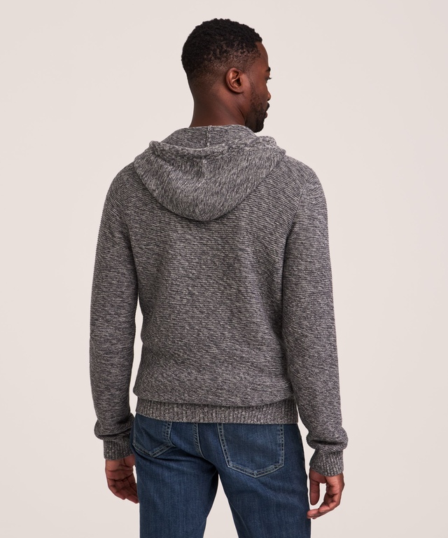 From Denver Hayes, a knitted hoodie with a handworked look for comfort as well as style. Marled yarn gives it the textured finish and tweedy appearance. Perfect for all the casual activities that fill your day, this sweater adds warmth with a cozy hood and a pocket to protect your hands.