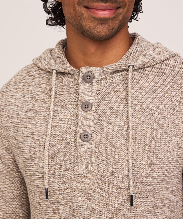 From Denver Hayes, a knitted hoodie with a handworked look for comfort as well as style. Marled yarn gives it the textured finish and tweedy appearance. Perfect for all the casual activities that fill your day, this sweater adds warmth with a cozy hood and a pocket to protect your hands.