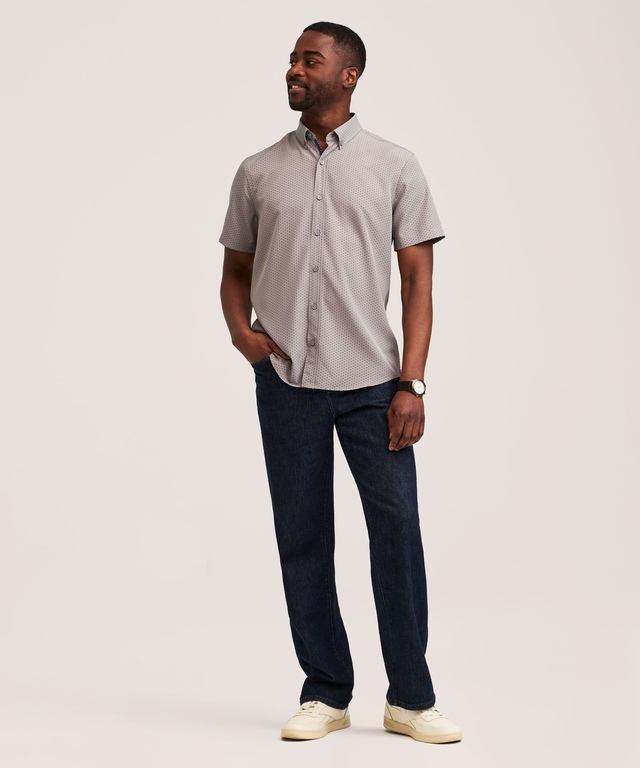 For comfort during any number of activities, our Denver Hayes Hybrid 4-Way Stretch Woven Shirt moves with you every which way. It looks smart too, with an all-over print and a button-down collar. Wear it untucked for laid-back events or tuck it in when you need a neater look. Versatile for sure!