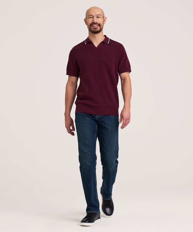 In a soft breathable cotton sweater knit, our versatile Denver Hayes short sleeve sweater features a fashionable Johnny collar tipped in a contrast colour. This sweater is the perfect compliment for any bottom when you are looking to elevate your summer look.