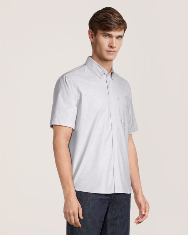 Good for the workplace, the ballpark or the bar, this Denver Hayes short sleeve shirt is your ideal warm weather garment. Versatile and easy to wear with added stretch, this shirt has a neat button-down collar and a single pocket where you can keep an ID card at the ready.