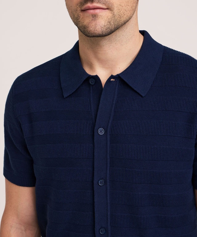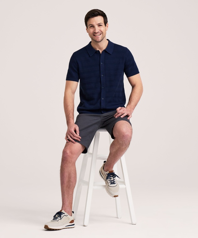 From Denver Hayes, a full-front buttoned version of a polo shirt. Made in naturally breathable cotton knit, it has a subtle textured stripe pattern for added style. When your activities ask for an upscaled look, this polo shirt is a great way to go.