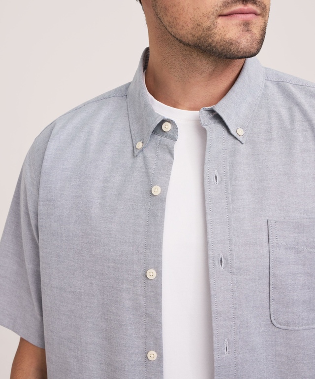 Our Denver Hayes Oxford shirt is made in a stretch fabric for easy mobility. Treated to resist wrinkles for easy care, it's a sound addition to your summer wardrobe. Featuring a button-down collar for a neat look, this shirt works buttoned up as well as open over a tank or tee.
