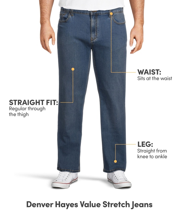 Featuring straight legs that always look right, these Denver Hayes stretch jeans come in a grey wash with all the typical jean features you’d expect. They have five-pocket styling, a zippered fly and contrast topstitching.