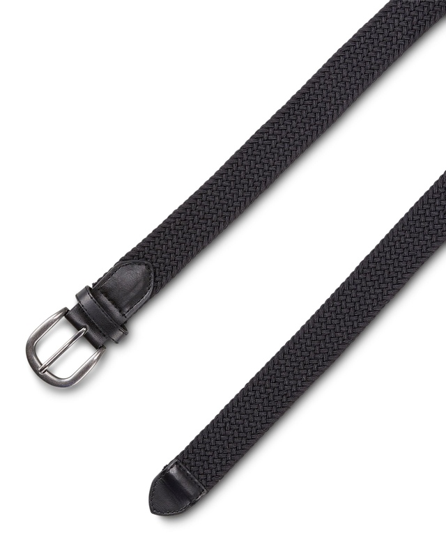 With built-in stretch, this Denver Hayes braided belt will complement both casual and formal pants. It has a silver-toned metal buckle and leather-like details for durability.