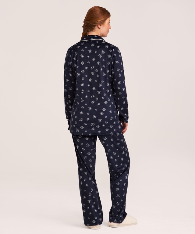Great for lounging, ideal for sleeping, our Denver Hayes pajama set comes in fabric with a brushed finish and a soft hand feel. The snow flake pattern gives it a cozy and holiday feel.